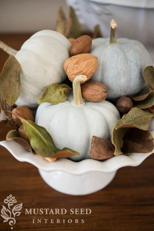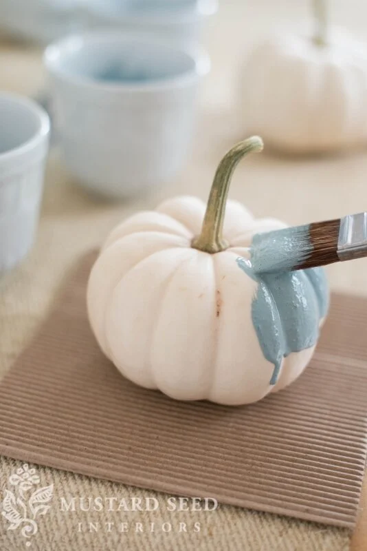 Miss Mustard Seed wrote an entire tutorial on how she painted these pale blue pumpkins for her home. Click the image below to check it out.