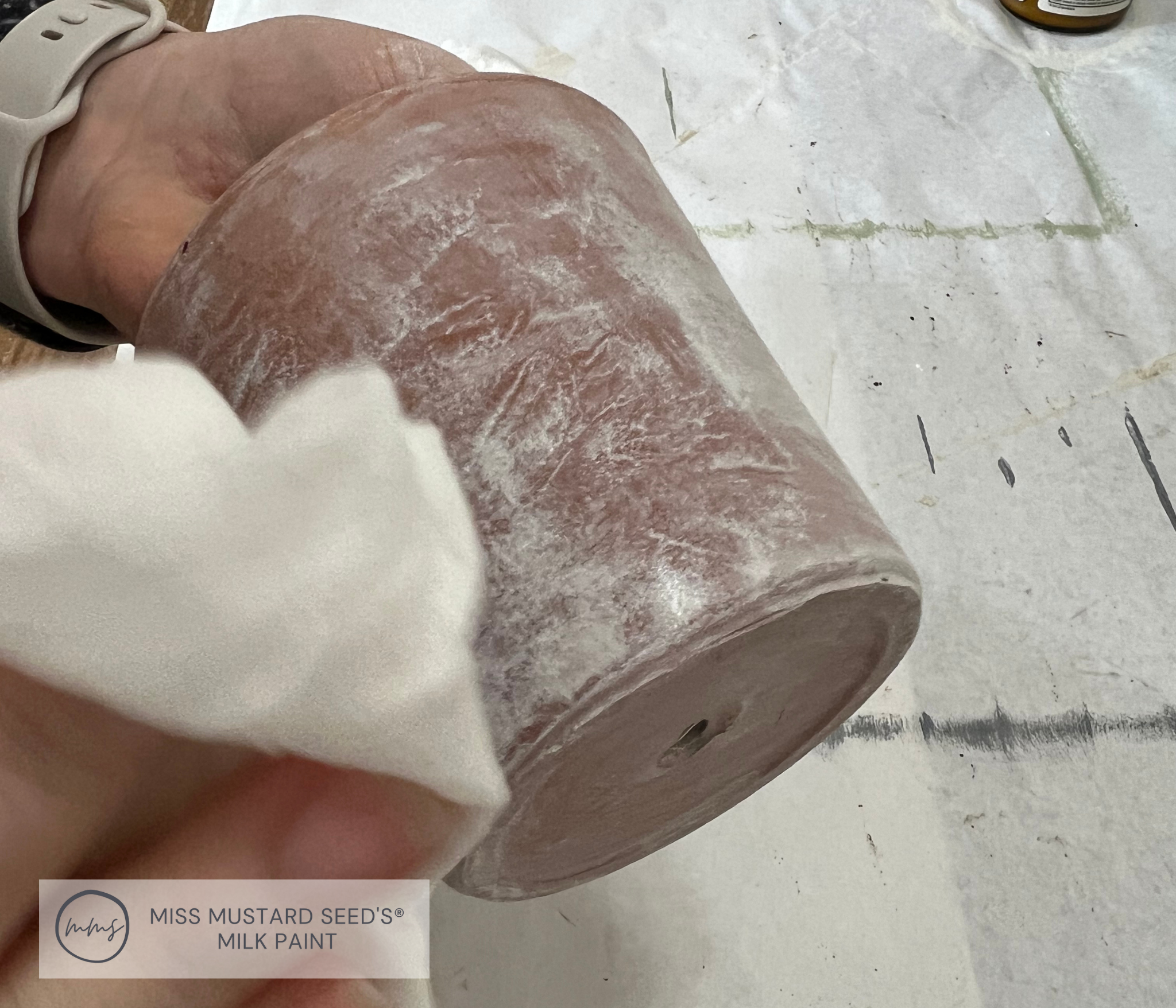 Fresh flowers and potted plants are perfect for adding a cheerful feel to any tablescape. One way to spruce up terra cotts flower pots is to white-wash them for an authentic limed look. To whitewash with MilkPaint™, we recommend mixing 3 parts water to 1 part powdered paint. Then brush one coat of your wash over the pot and dab with a wet paper towel or rag. This will create more of an aged weathered look.