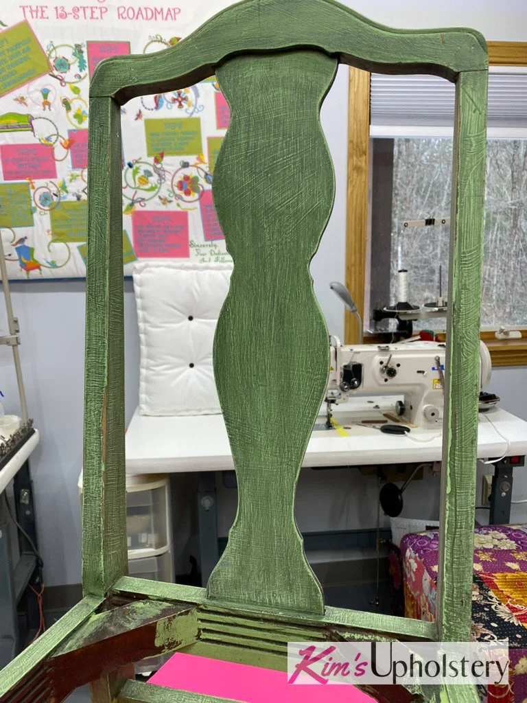 I choose MMS Boxwood for the color of the frame of this chair, and a fun bright fabric for the seat. The Boxwood brings the deep rich greens of the forest that I love into my home.