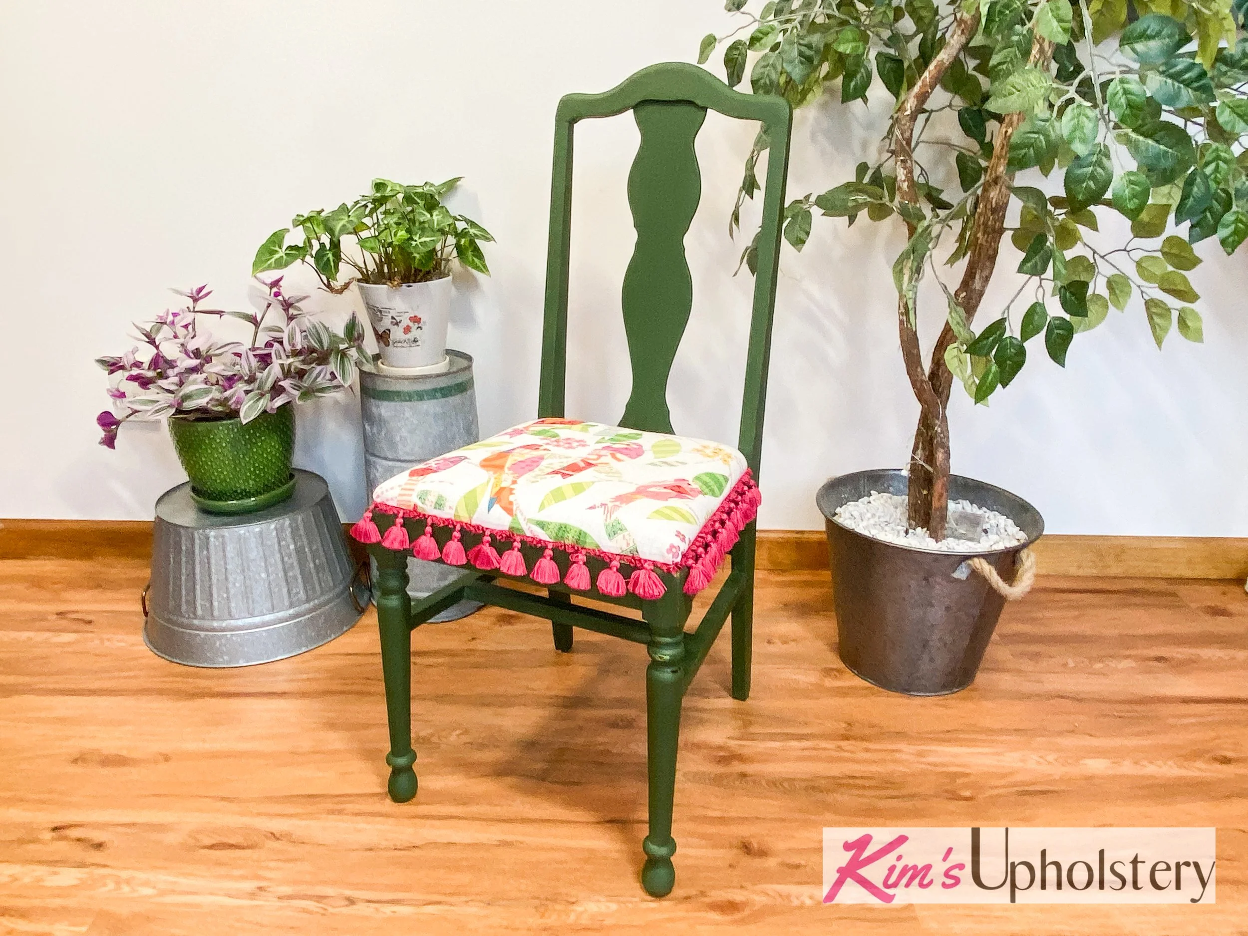 It was time to upholster the slip seat for my chair while I waited for the MilkOil™ to set up. I choose a fun bird print fabric. The colors are fun and whimsical, which will look perfect in my home.