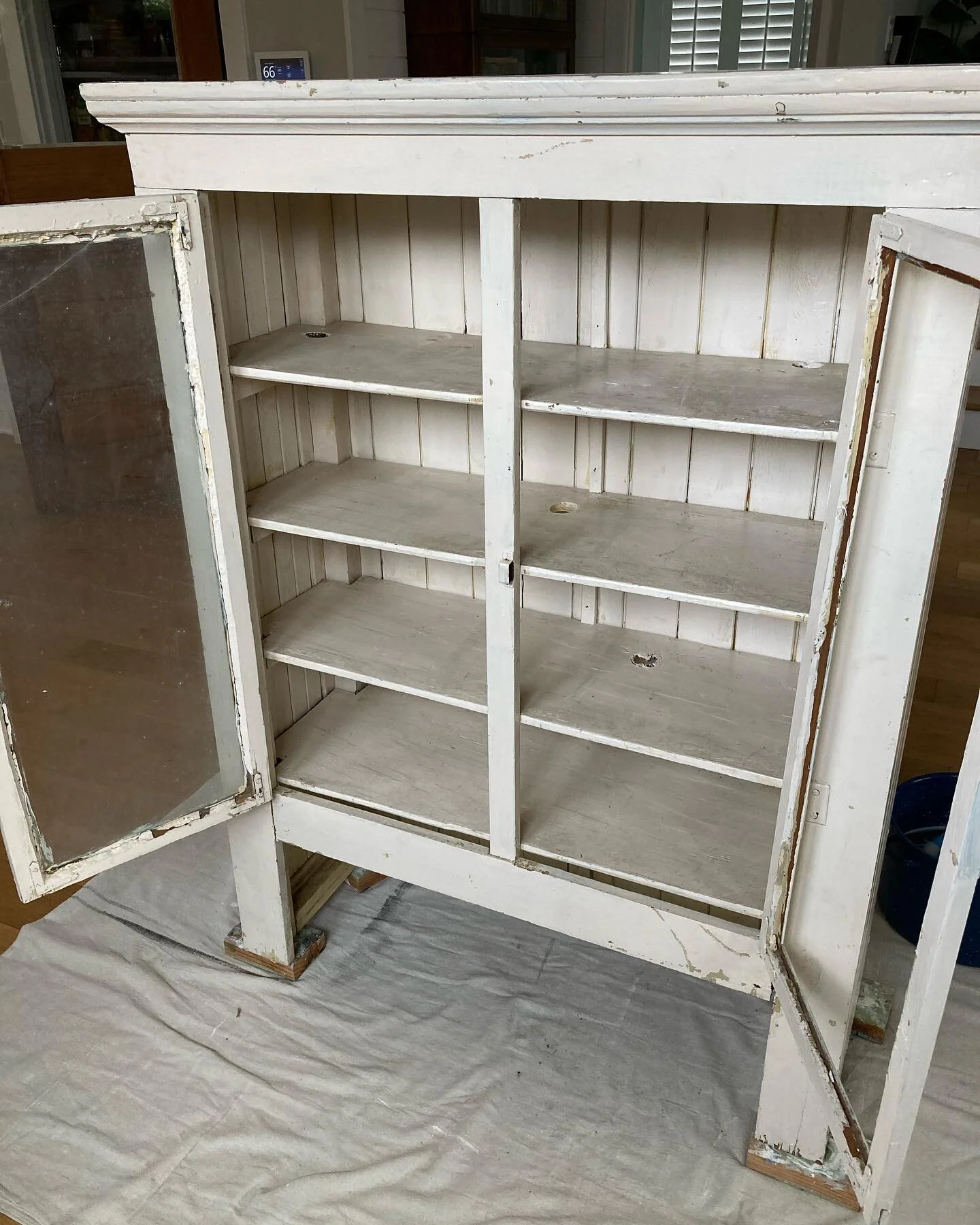 As she painted it on, she knew it would show off her amazing ironstone collection once it was finished. As she worked, her Milk Paint crackled, crazed and chipped here and there. This was a perfect result for such an old piece!