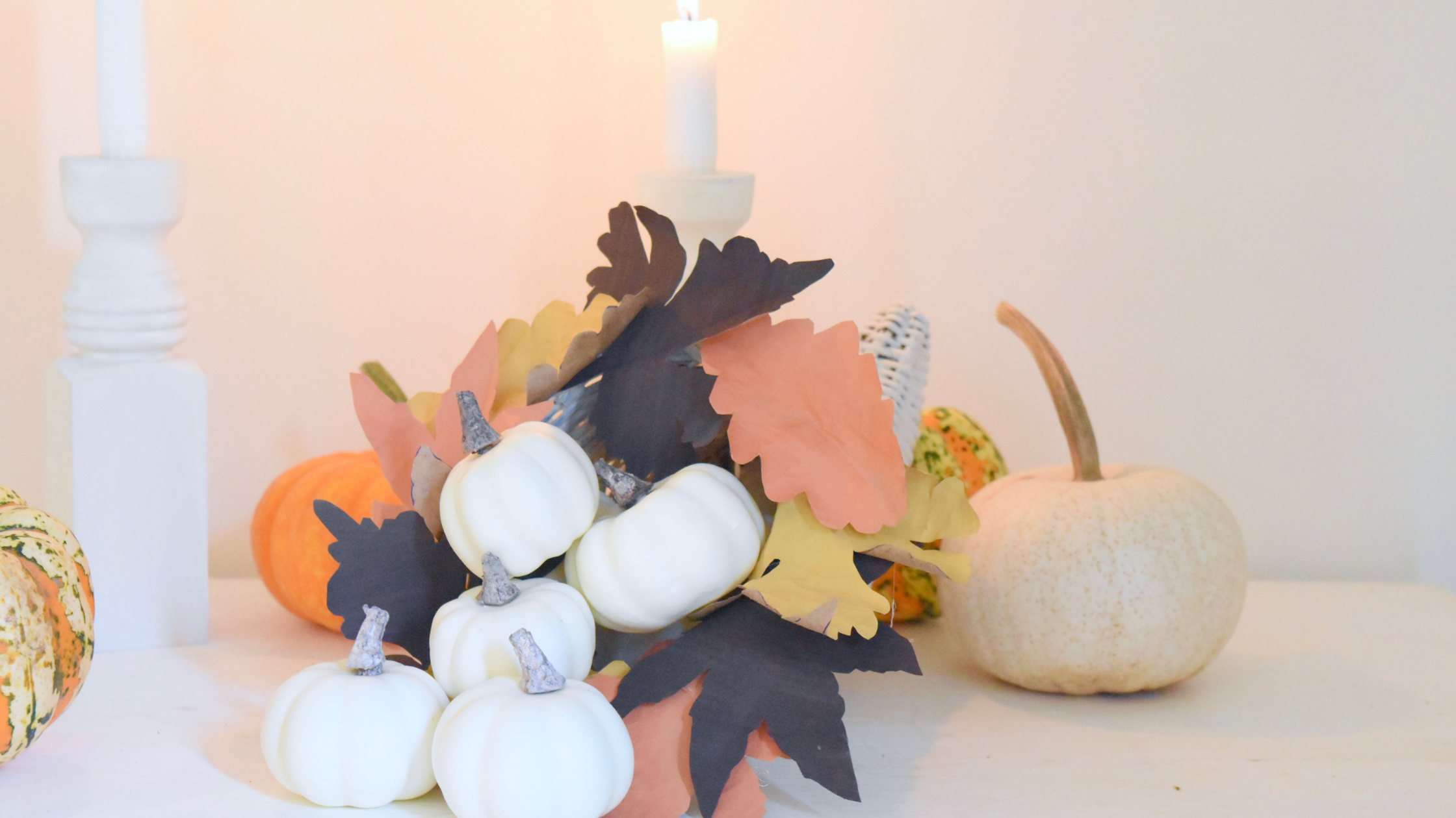 I wanted to attach the leaves to a cornucopia. You can purchase cornucopia baskets online or at your local craft store. I thought this would make a fun centerpiece for the Thanksgiving holiday, especially if it were filled with small pumpkins and gourds.