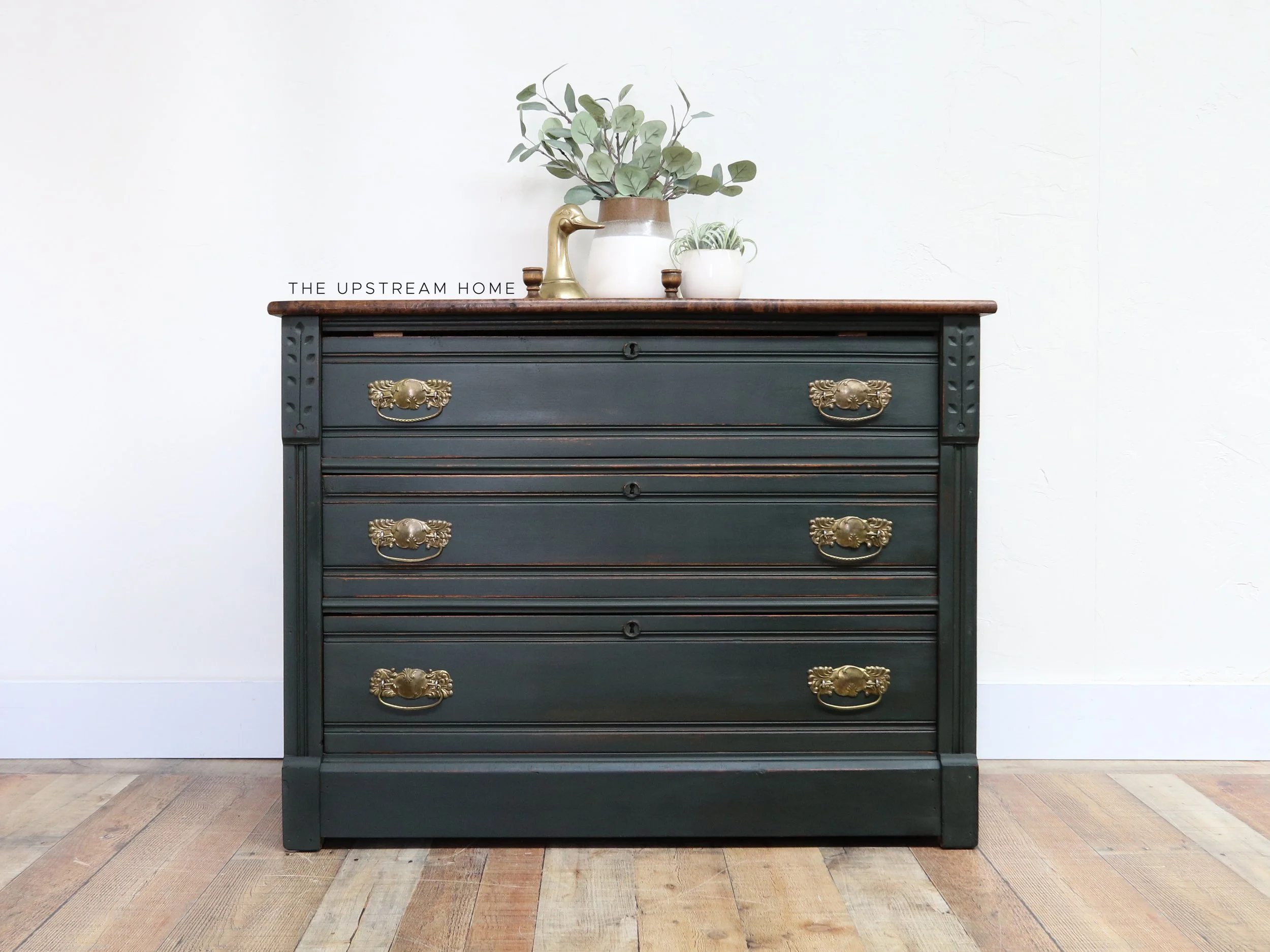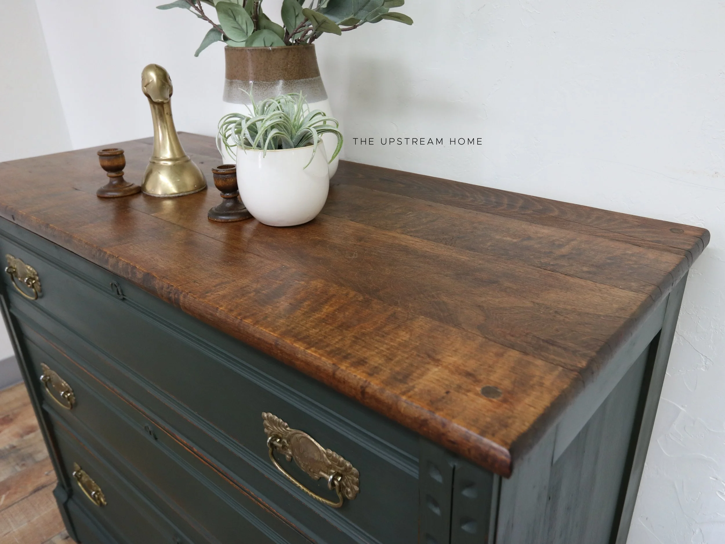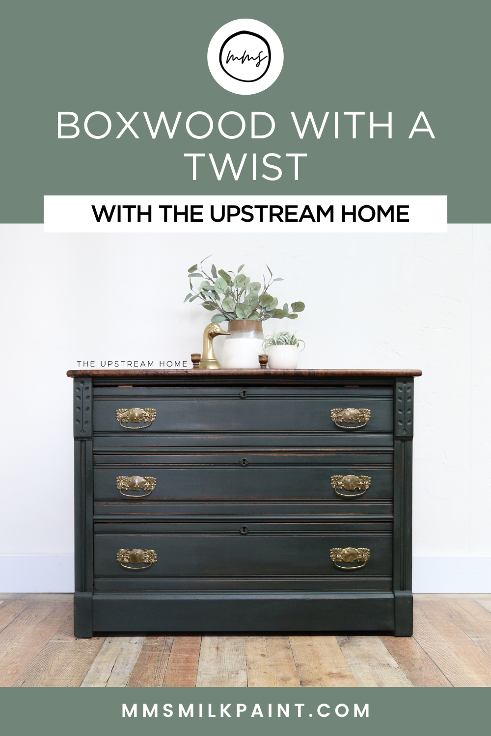 I was feeling inspired by November’s color of the month, Boxwood, but also wondered about using Typewriter on this three-drawer dresser.