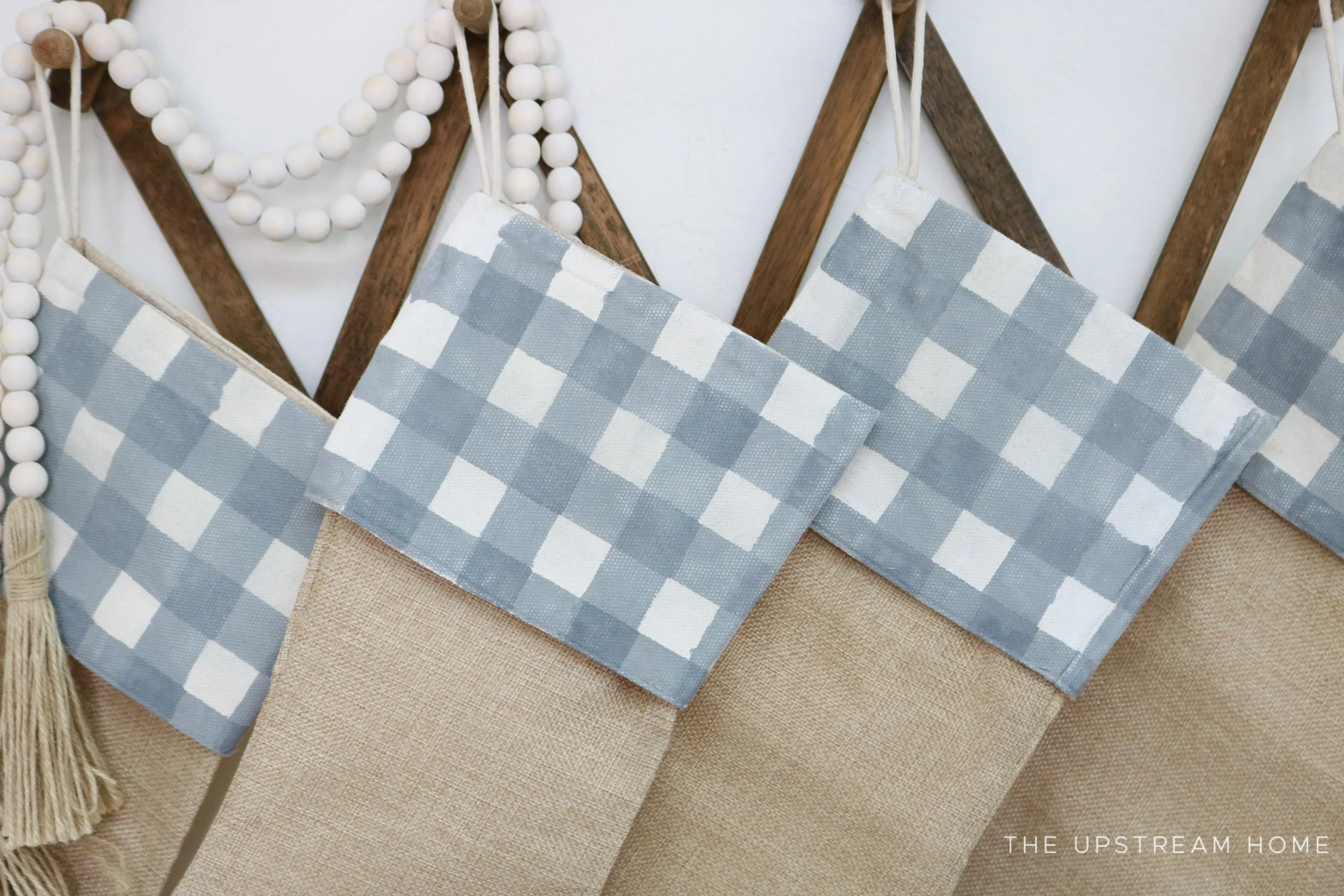 As the Christmas tree goes up, often the family stockings do as well. I’m so excited to share how you can create these sweet buffalo plaid Christmas stockings using Miss Mustard Seed’s® Milk Paint!