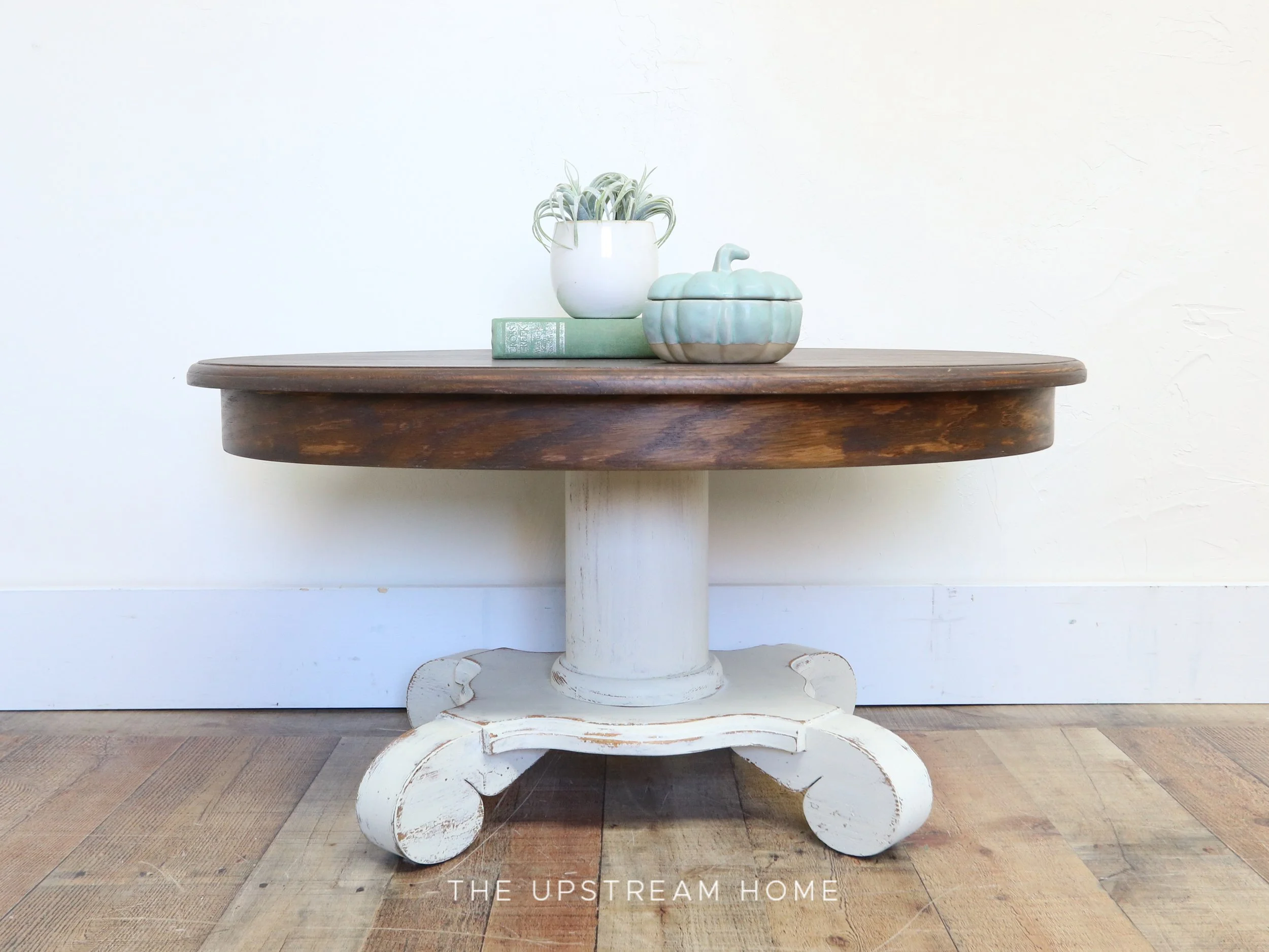 The scale of this empire-style table lends itself perfectly to a small living room, but I found the original stain to be lackluster and boring. MMSMP to the rescue!