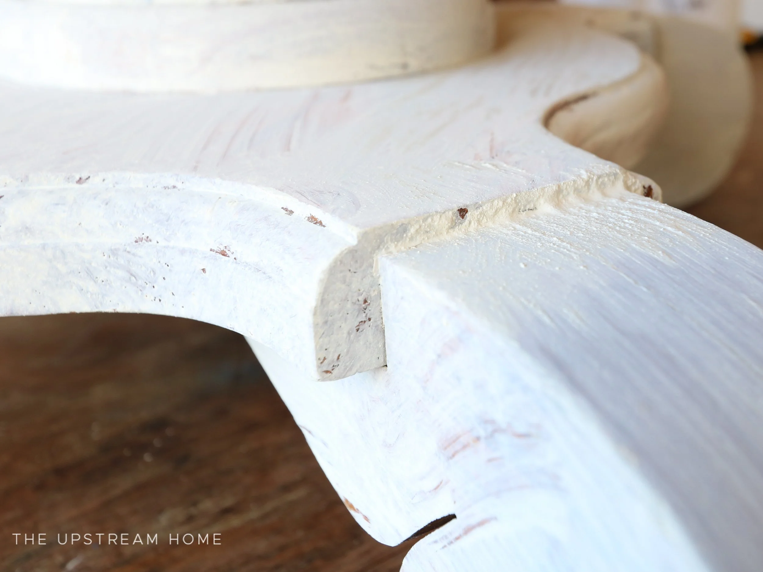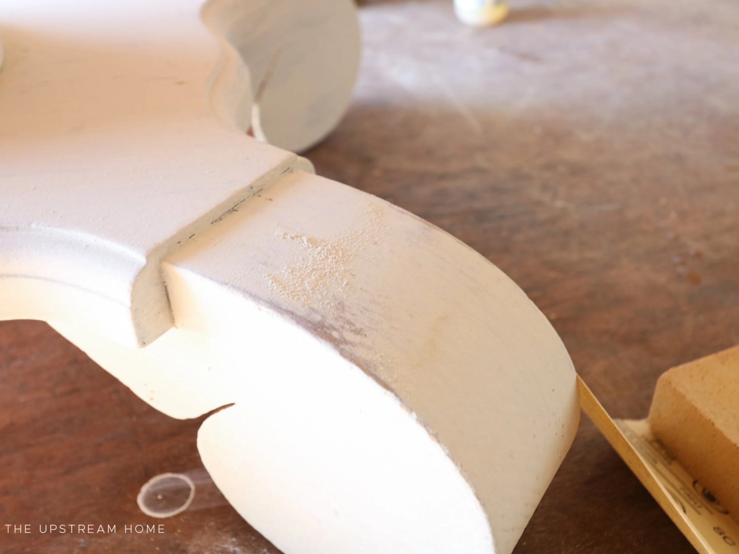 So I decided to go a lighter route! Farmhouse White was the winning choice for the base of the table. MMSMP goes a long way, and I only needed a half cup of paint for two coats. I like to go apply paint heavily in the nooks and crannies when hoping for chipping!