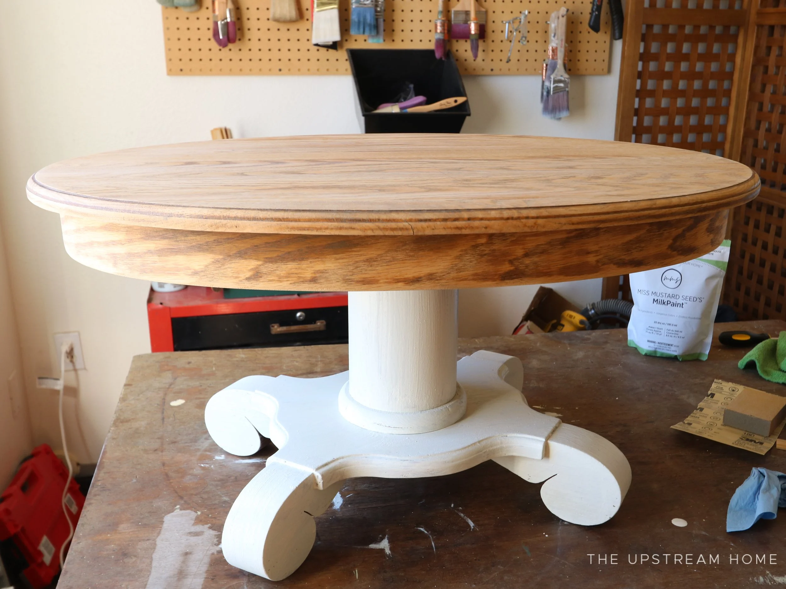 First off, I decided to go with a lighter base and natural top. Given the scale of this particular piece, I thought that going with a darker base (such as Typewriter) and a dark top would dwarf the table. I knew I didn’t want that!