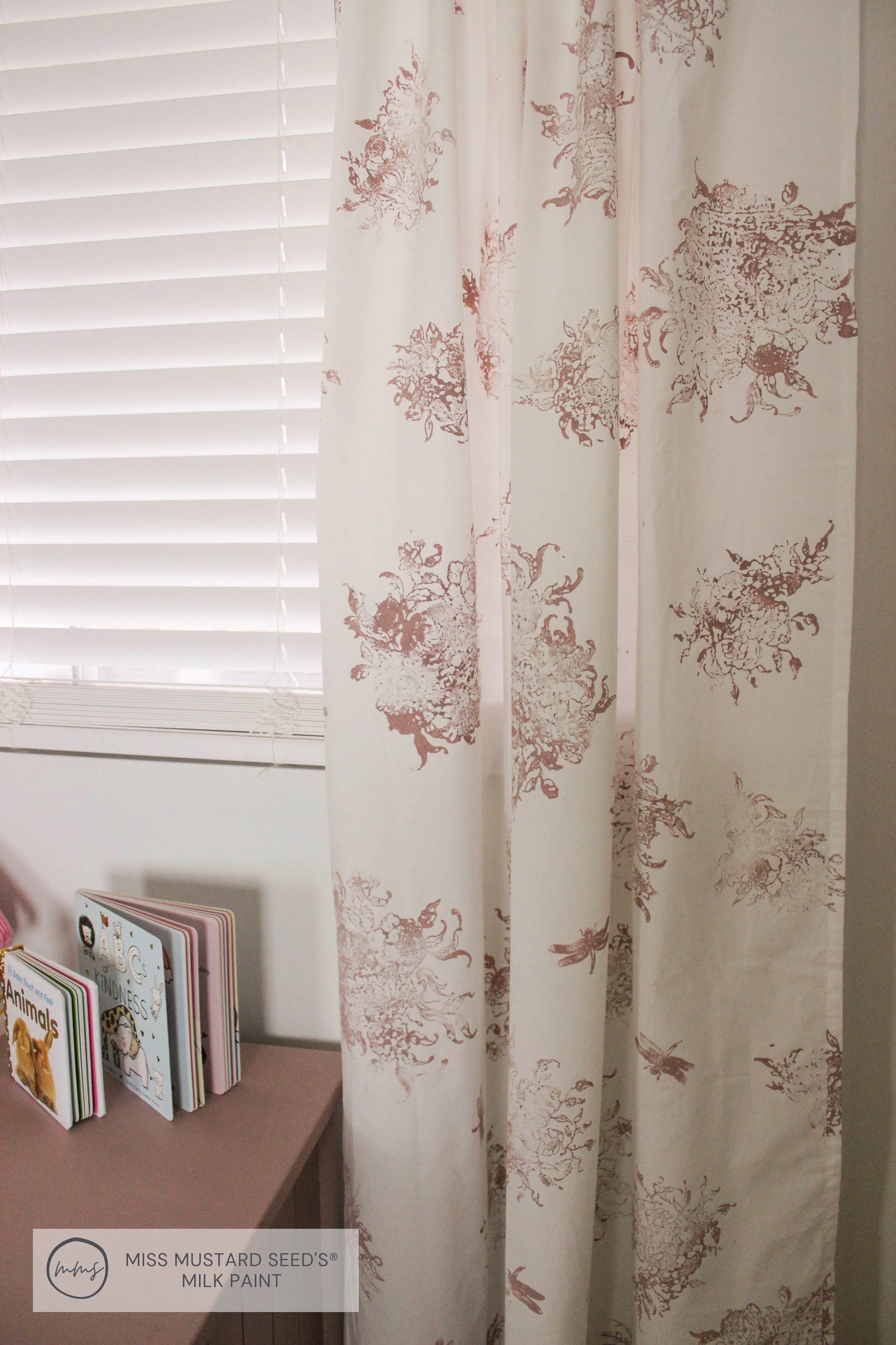 Brenda created these curtains by mixing up Arabesque. Then, she dipped her stamp into the paint and created a pattern on the fabric. Once the MilkPaint™ was dry, she set it with an iron on the steam setting.