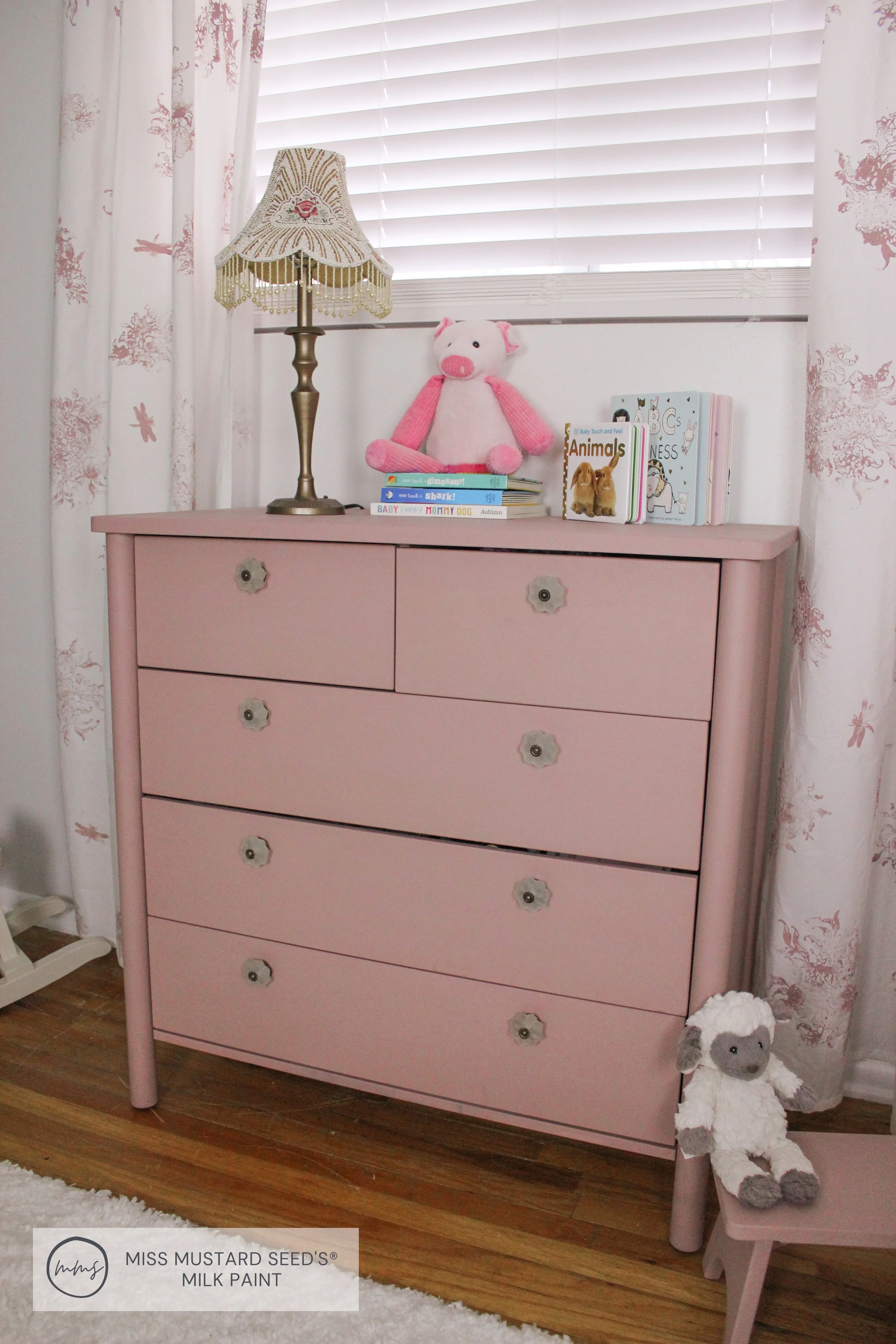Using all MMS MilkPaint™ products, she was able to provide this precious baby girl with a nursery that is as beautiful as it is safe. All of the surfaces she painted and refinished are scrubbable and washable (a MUST whenever little kids are involved). Because our MilkPaint™ contains no VOC’s, Brenda was able to work inside safely and with a clear conscience.