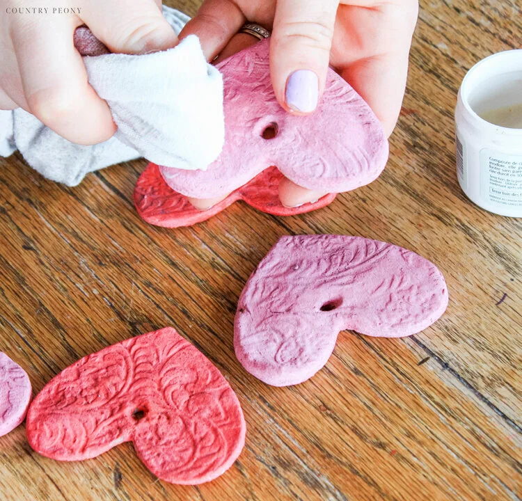Her salt dough hearts were strung with ribbon and could be hung anywhere! And who says heart decorations are limited to Valentine’s Day? You can “heart” Miss Mustard Seed’s Milk Paint any day of the year!