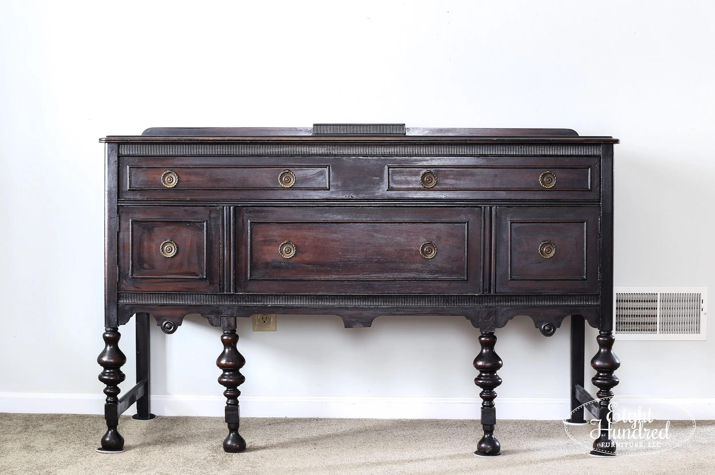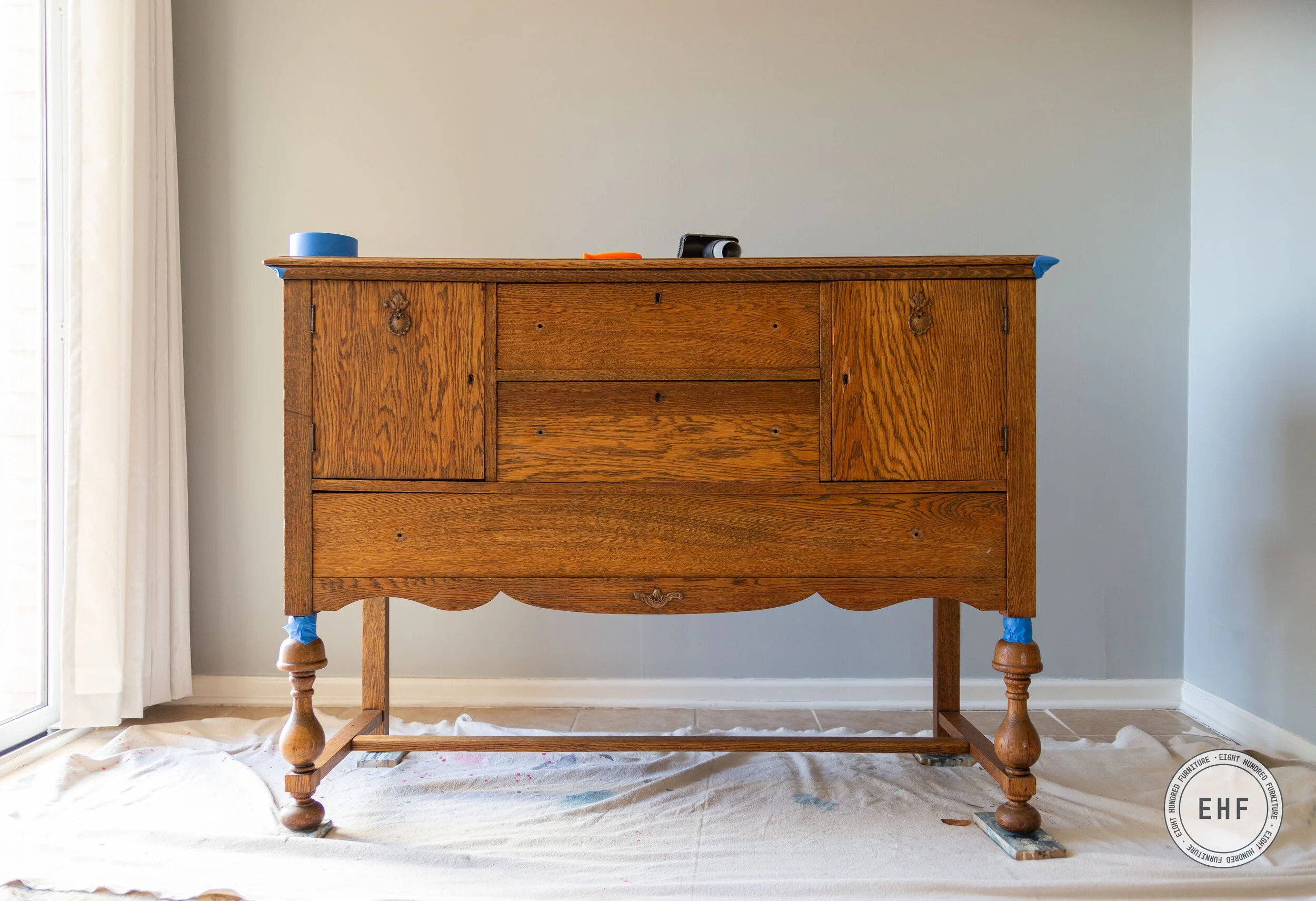 Oak, Walnut, Cherry and Mahogany all have high concentrations of tannins. Here’s an oak buffet that has a very pronounced grain pattern and a warm orangey/brown original stain.