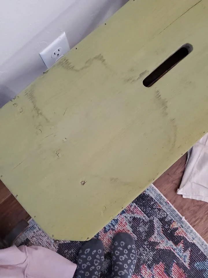 This little stool was painted by our Facebook Group member, Brittany Bagley in Boxwood. There were stains on the stool that wiggled their way through the paint.