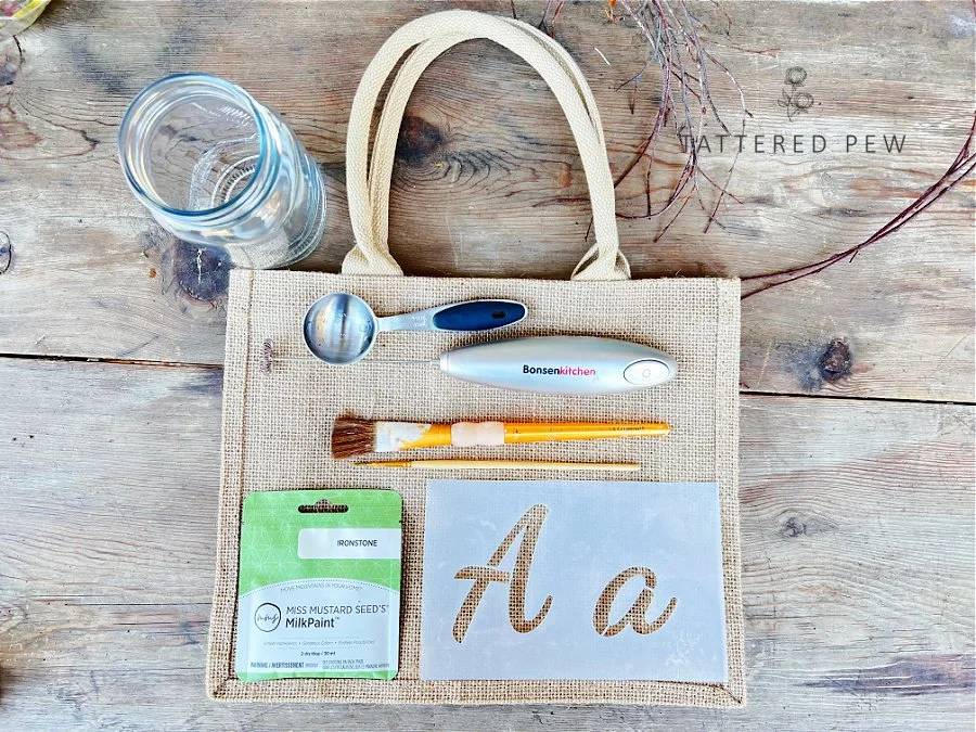 How to Stencil a Burlap Bag with Miss Mustard Seed's® MilkPaint™