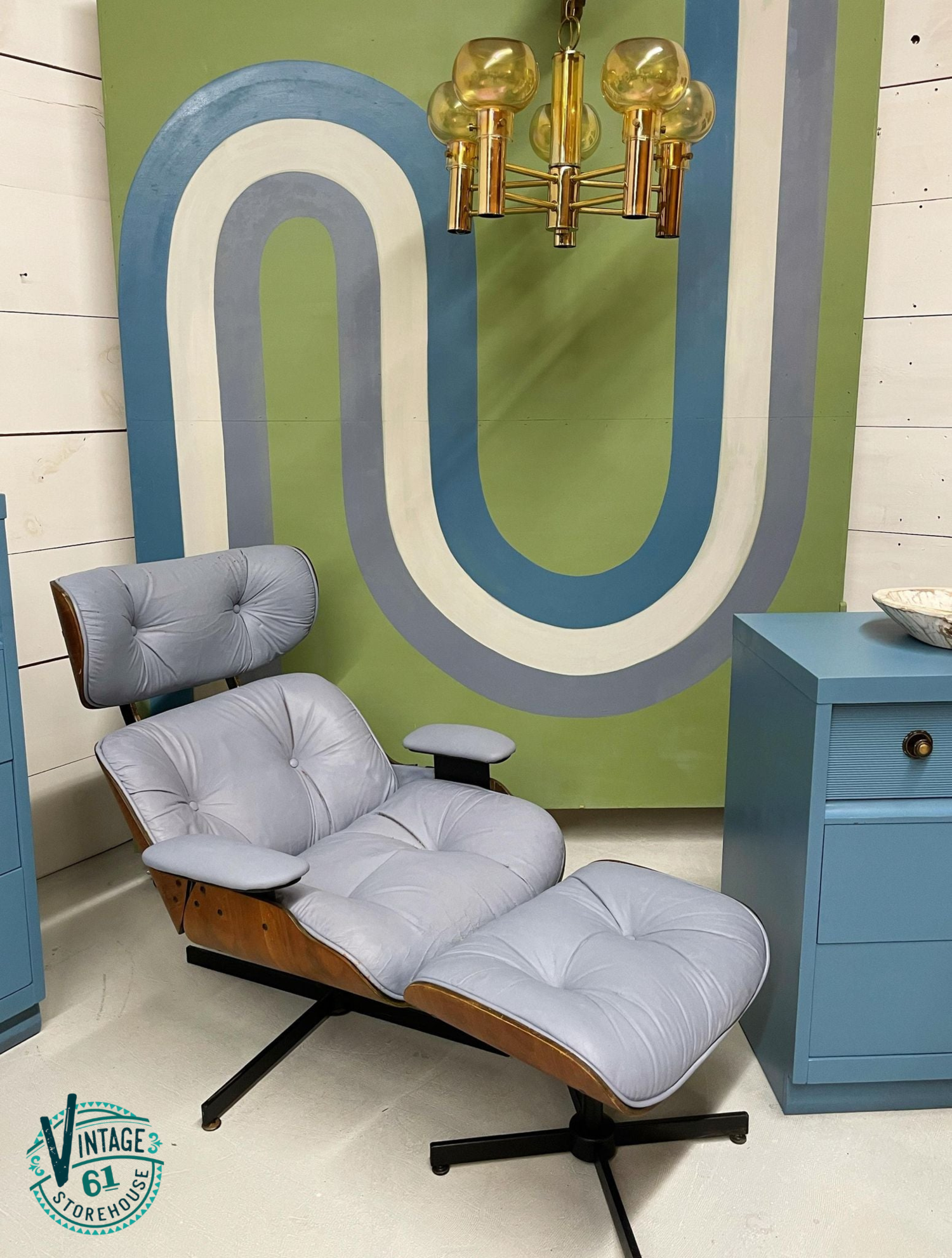 Vintage 61 Storehouse used Lucketts Green as an accent color to create a mid-century modern look with MilkPaint™. They paired French Enamel and Dried Lavender with Lucketts Green on the mid-mod back drop!