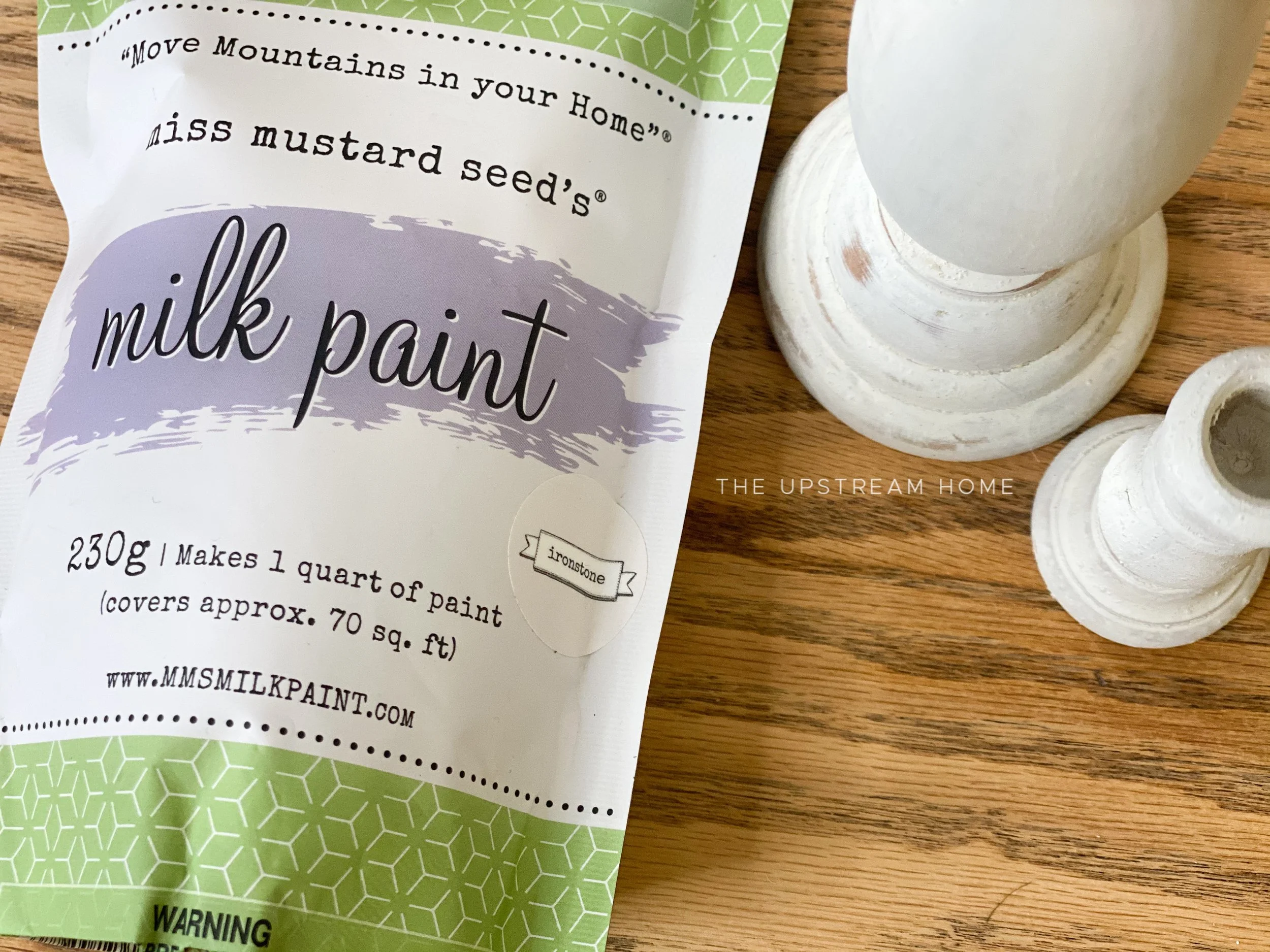 To get started, you’ll need to mix up a batch of Ironstone MilkPaint™. If you’re only painting a few candlesticks, ¼ cup of paint and ¼ cup of water will do the trick. After all, a little bit of milk paint goes a long way!