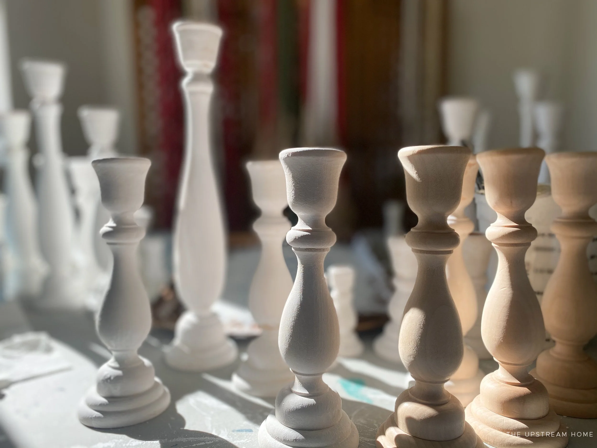 Now let’s transform these simple wood candlesticks into a commanding centerpiece!