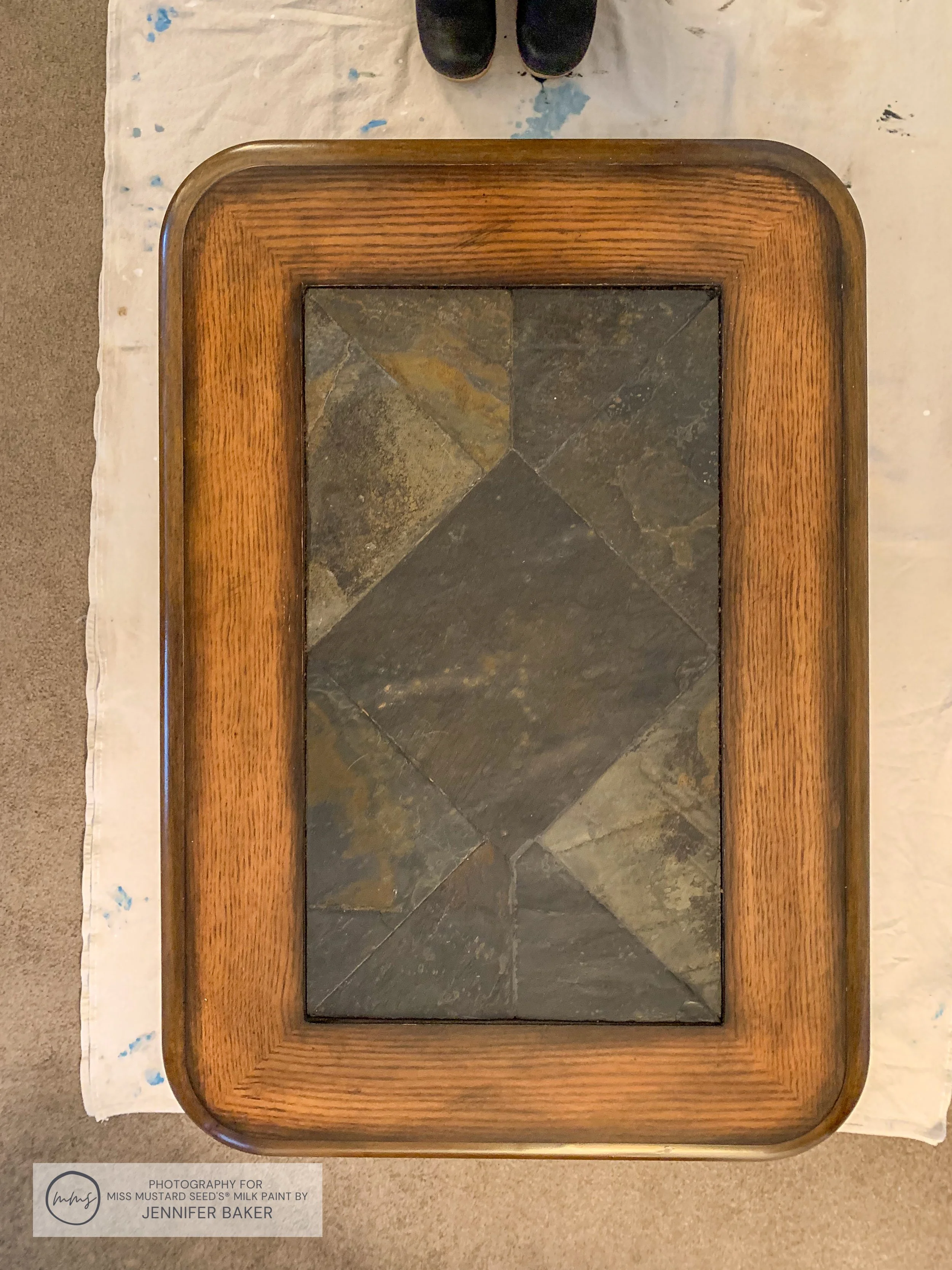 My plan was to paint the bodies in Mora and the slate tops in Grain Sack. I would use MilkGrip™ (formally known as Bonding Agent) to help the MilkPaint™ adhere to the slate and the factory finished wood.