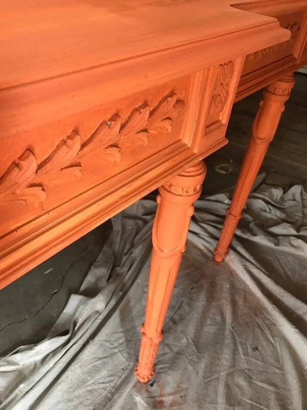 Using White Wax to highlight and bring out the carved detailing of the hall table