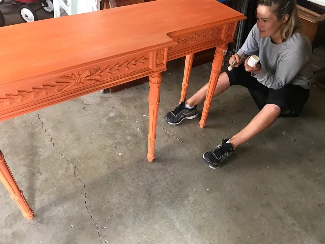 And along came my first-time-milk-painter and awesome photographer Sarah D. of Sarah David Photography. She had found a fabulously detailed (and looonnnnggggg) hall table at a garage sale for a STEAL! I just knew she and her lovely table were the perfect candidates for