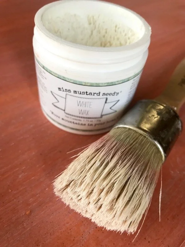 One coat of Miss Mustard Seed's Furniture Wax (clear) followed by the perfect light coat of MMSMP White Wax using our super easy-to-use Madeline Wax Brush.