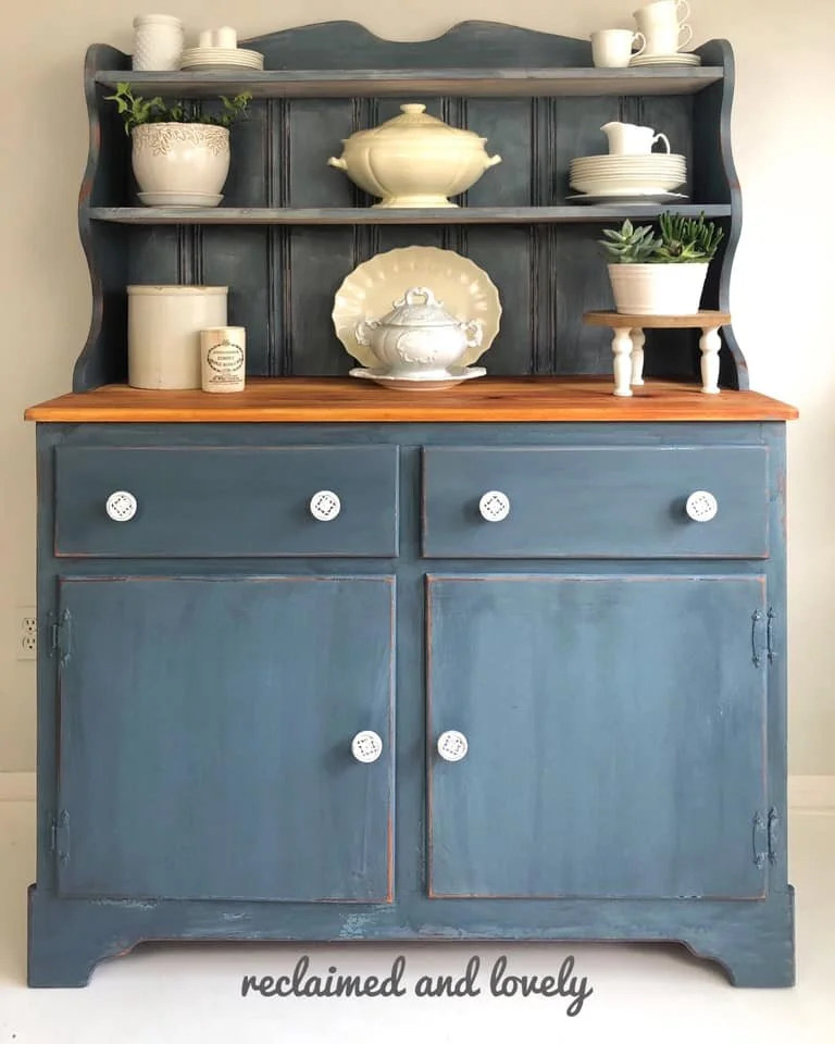 This week’s featured piece is a pine hutch that was in desperate of a makeover! Julie from Reclaimed and Lovely snagged it for a steal at $35 and refinished it using a custom blend of Miss Mustard Seed’s® Milk Paint.