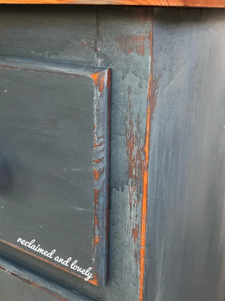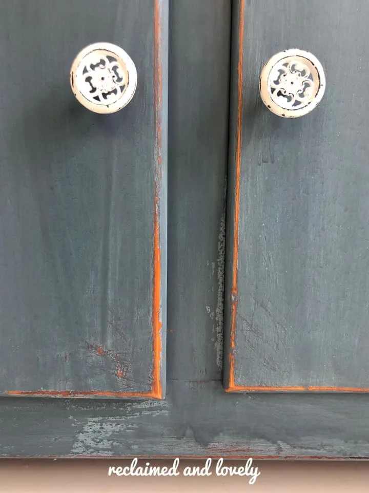 We like how she distressed the edges of the hutch, letting that original finish peek out here and there!
