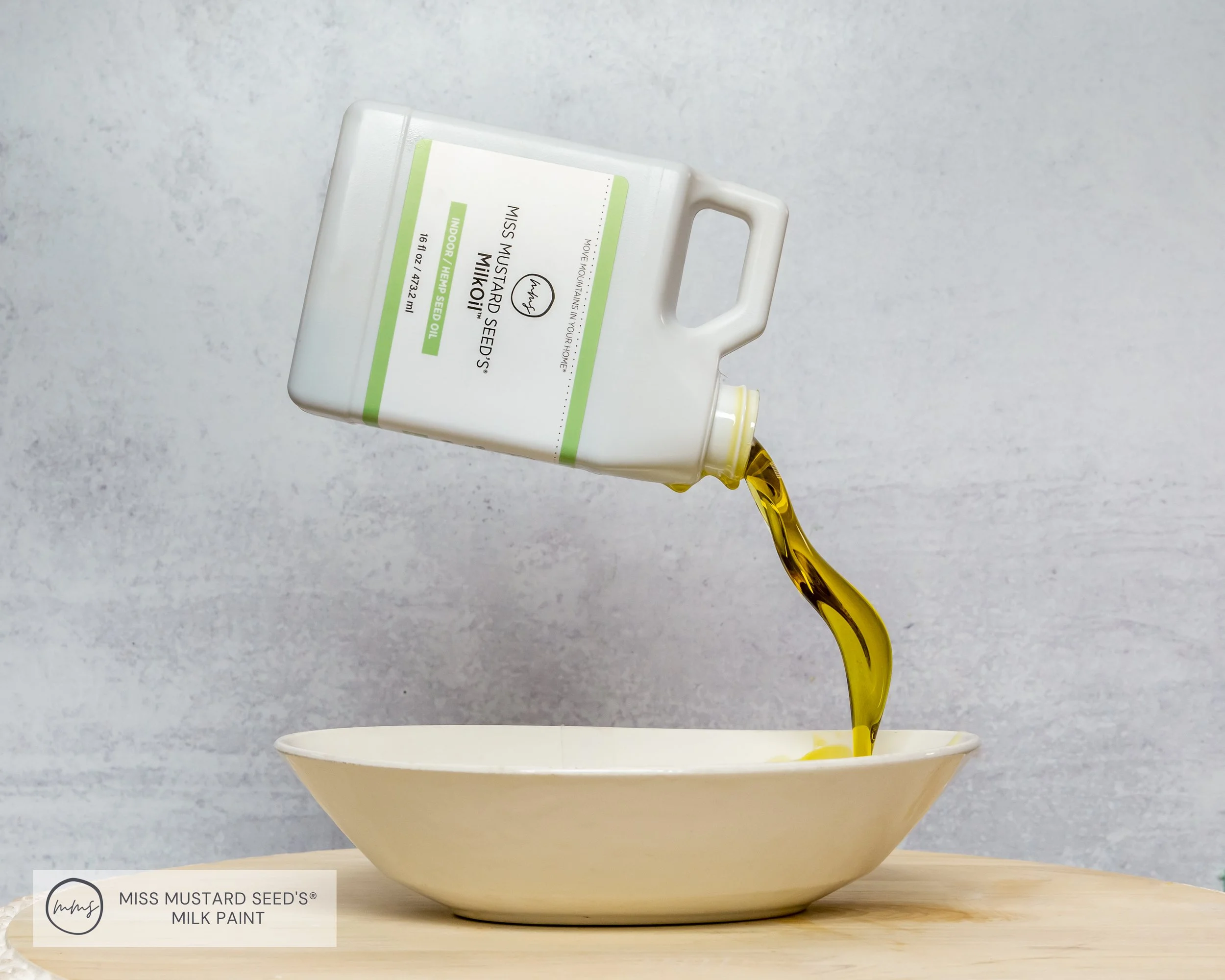 Be gentle with projects finished in MilkOil™ for 30 days. A residue may be left on items that are in direct contact with the surface, so it’s best to keep the project bare until it has cured.