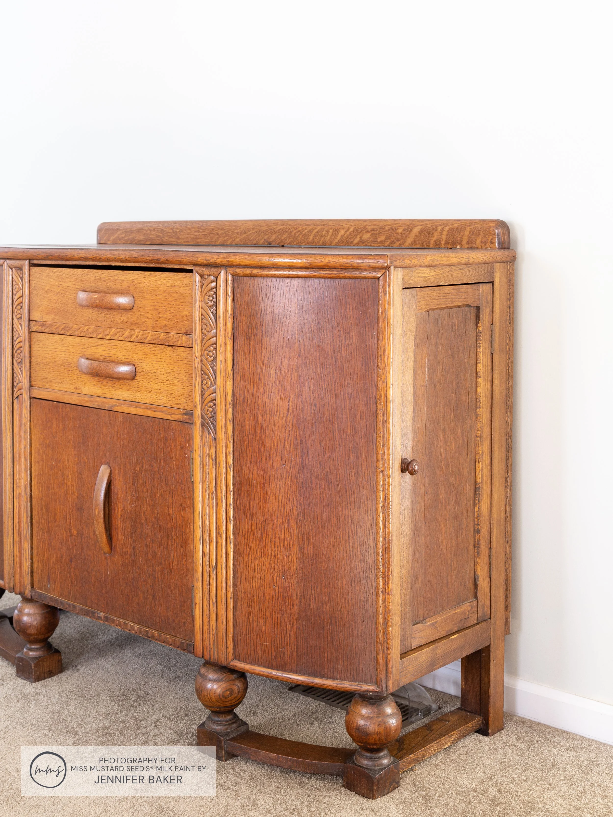 Now that they were looking mighty fine in MilkPaint™, it was time to turn my attention to this sweet 4 foot long buffet on the adjacent wall.