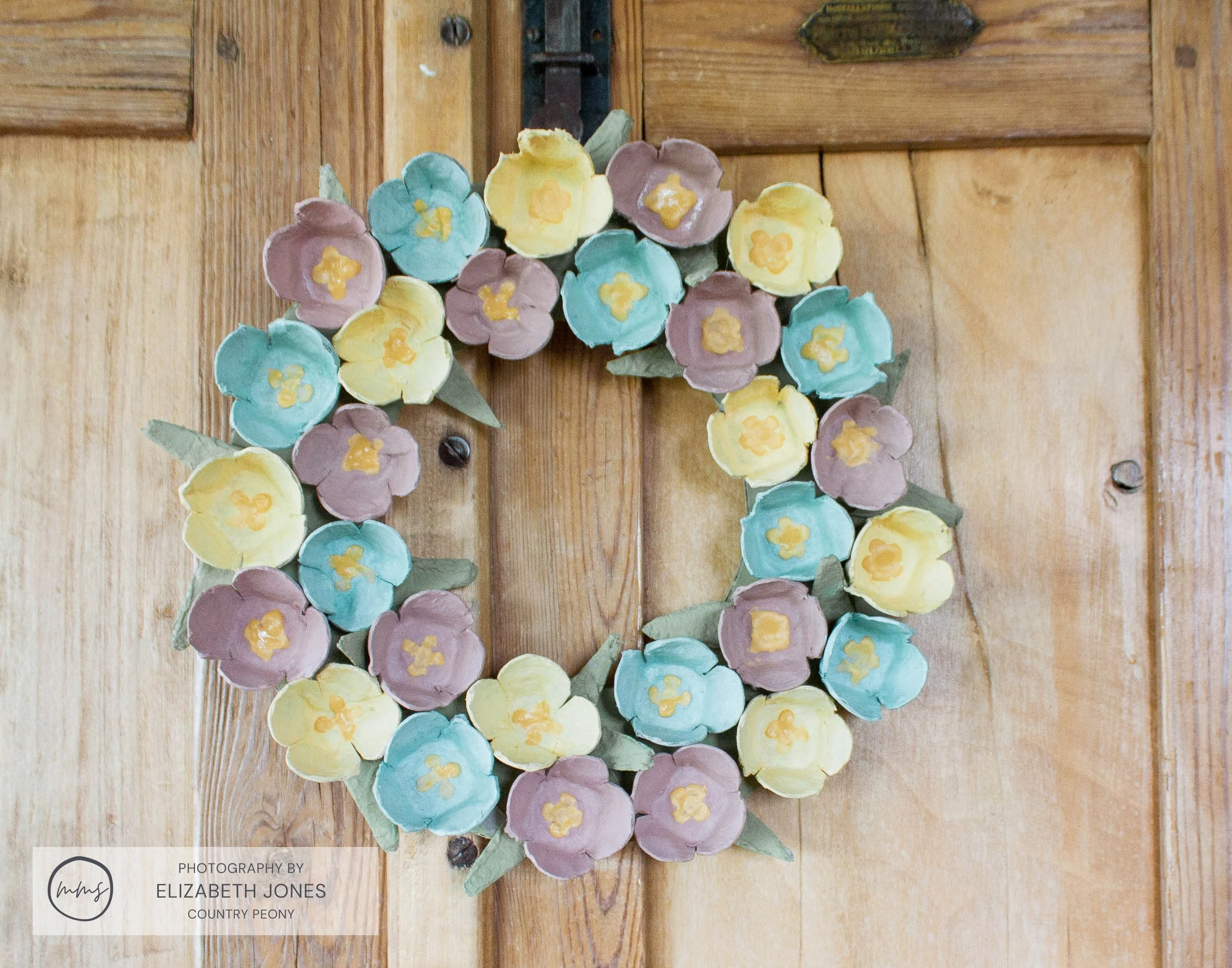 Sunkissed is the perfect color for using in spring crating. The Country Peony created this cute flower wreath out of egg cartons and MilkPaint™. She paired Sunkissed with Aqua Sky and Arabesque.
