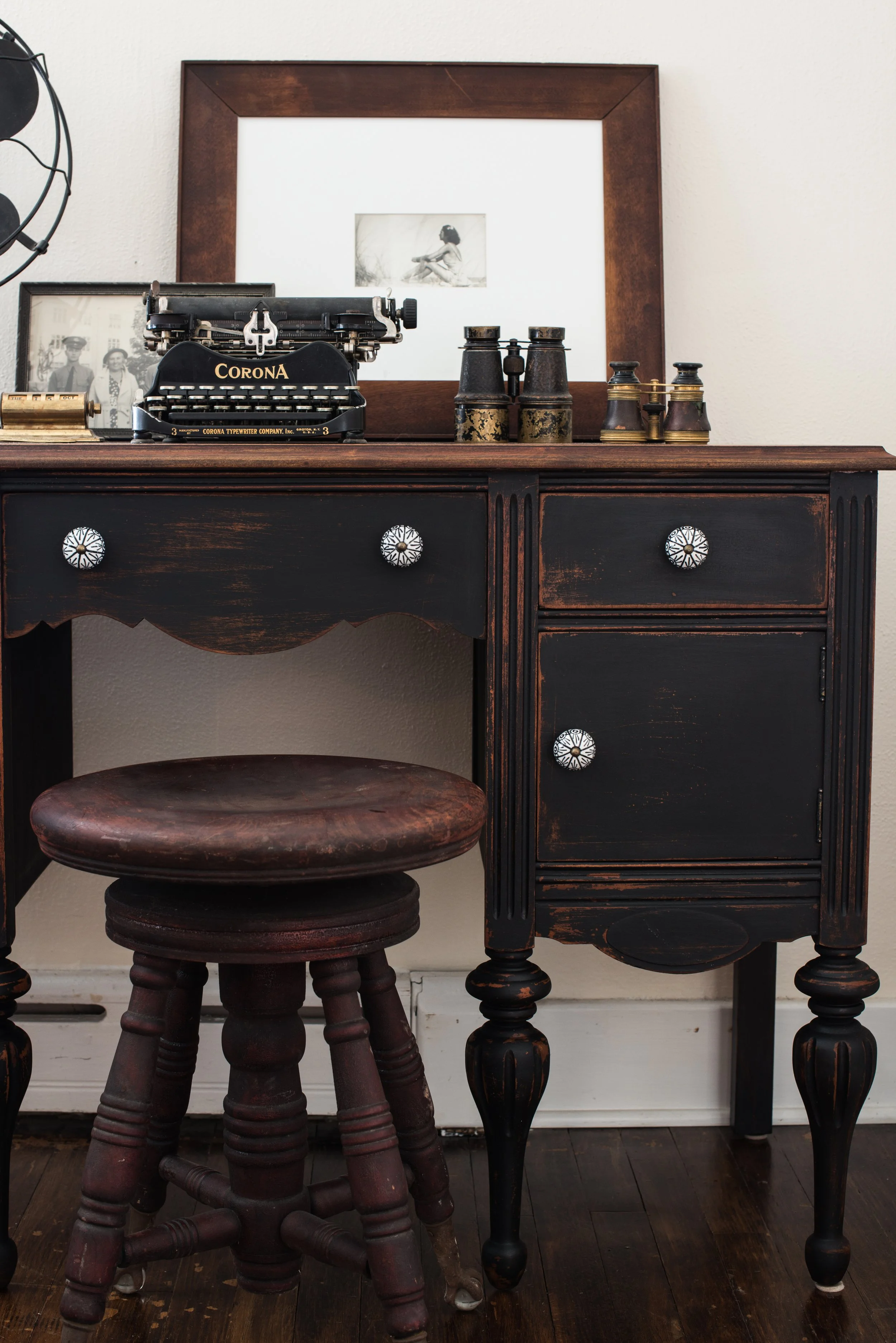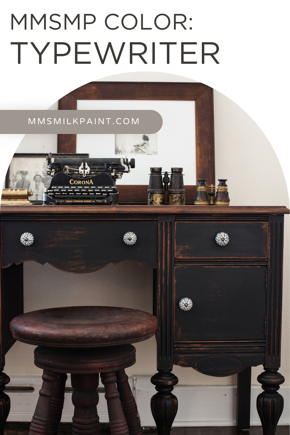 Typewriter is a soft black with a time-worn feel. Like the frequently used keys on an antique typewriter, this color is stately enough to adorn the most classically shaped pieces yet humble enough to give the appearance of a well-loved antique. You can add Typewriter to any MilkPaint™ color to change the shade.