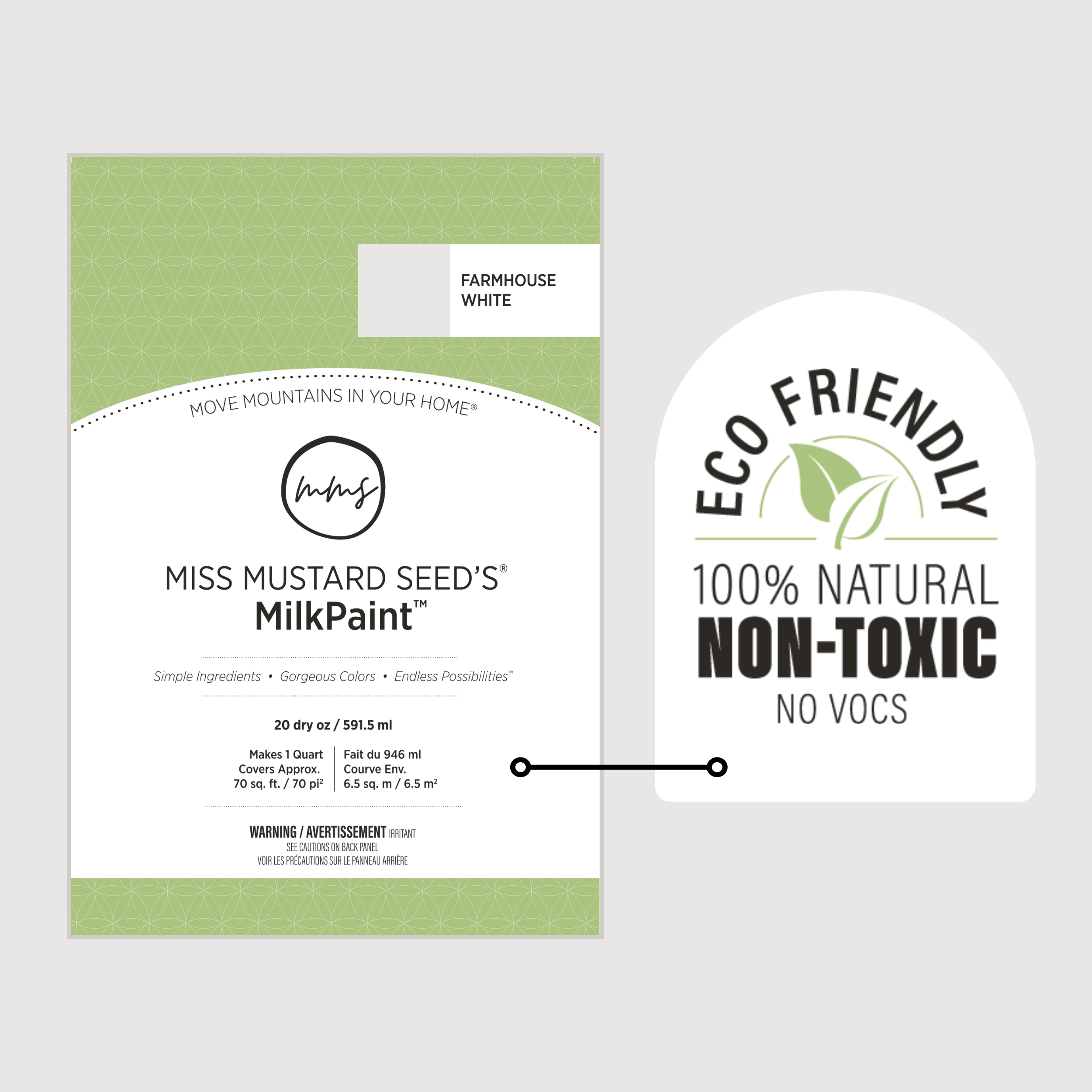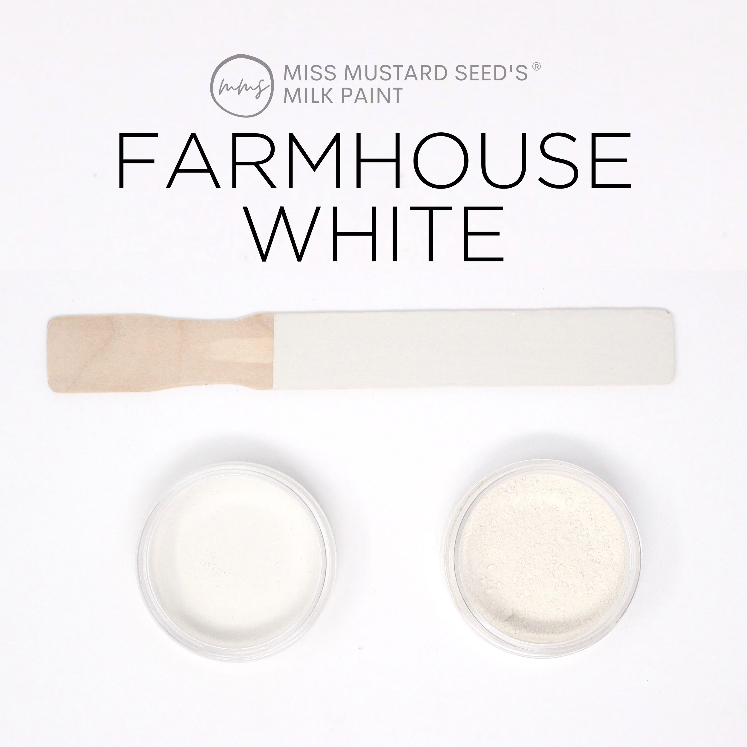 Farmhouse White is a bit warmer than Ironstone. Our fresh off-white reminds us of crisp cotton sheets drying in the breeze and a whitewashed picket fence lining a country dirt road.