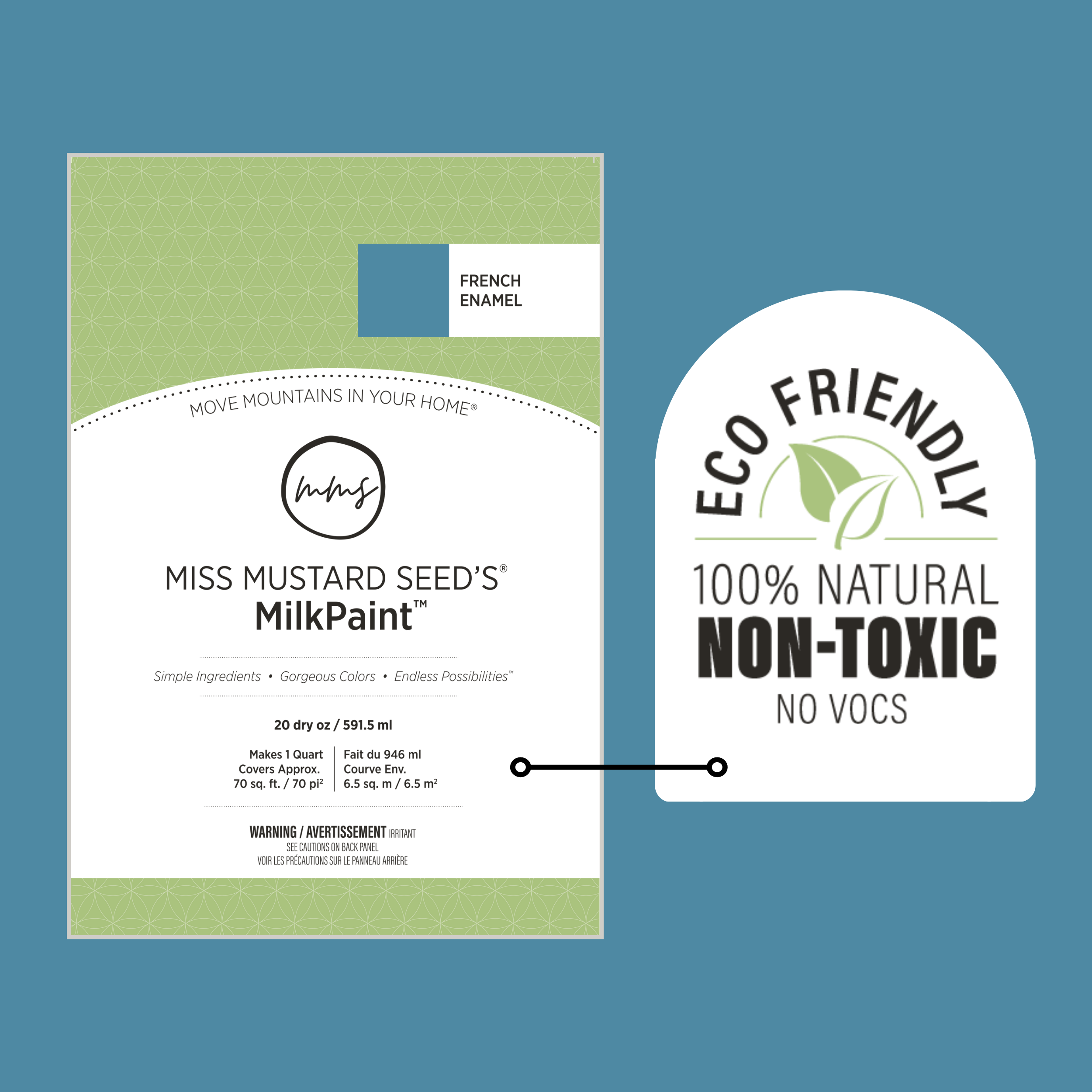 This bright blue gets its inspiration from the tall and long-handled pitchers found in French country homes. It brings to mind a sprawling cloudless sky and pairs well with pops of Mustard Seed Yellow or Lucketts Green.