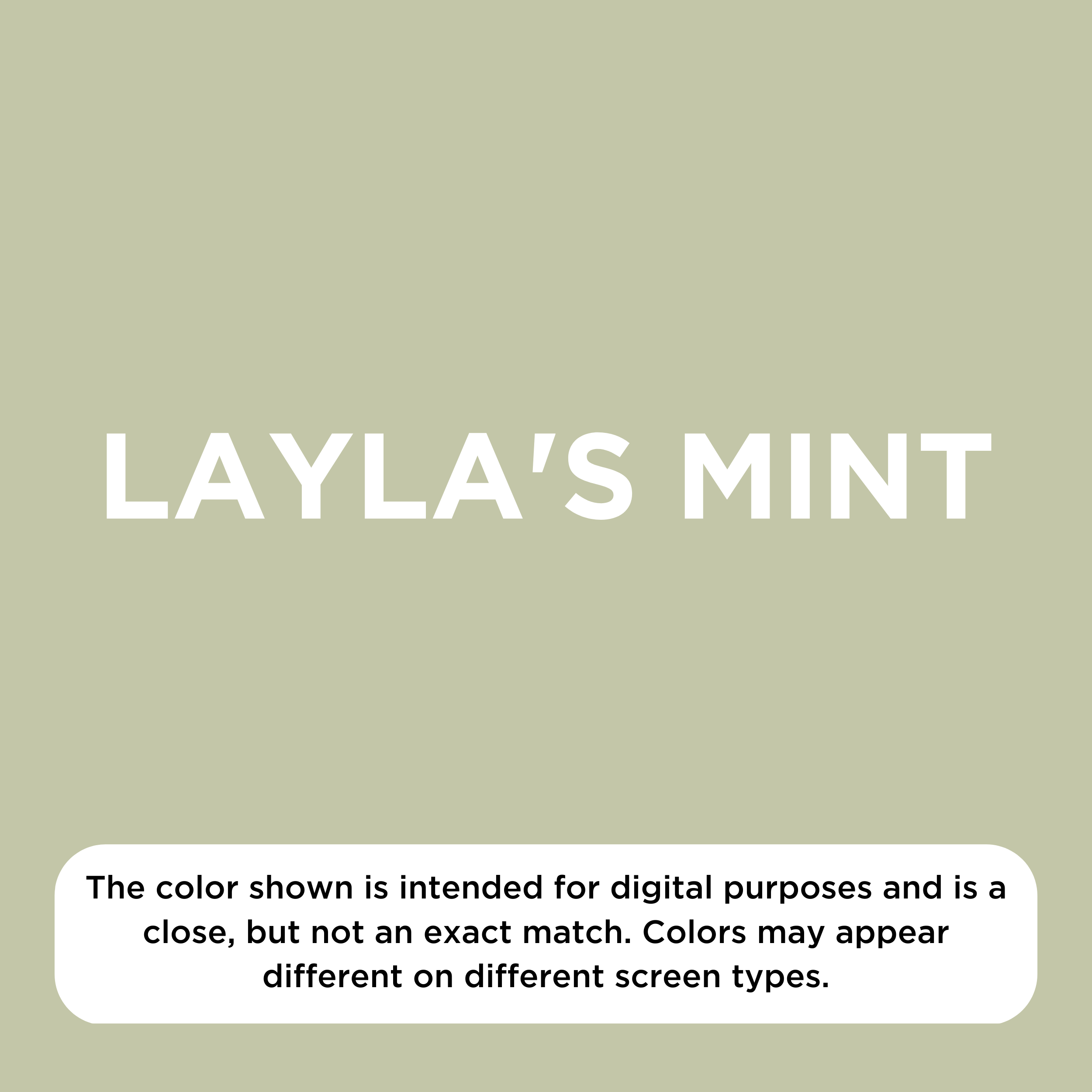 Layla's Mint was created for Layla Palmer of "The Lettered Cottage." It is a vintage color that can be found on historical landmarks across America. This aromatic green reminds us of the fleshy leaves of succulents, vintage jadeite glassware, and the crinkled leaves of lichen.