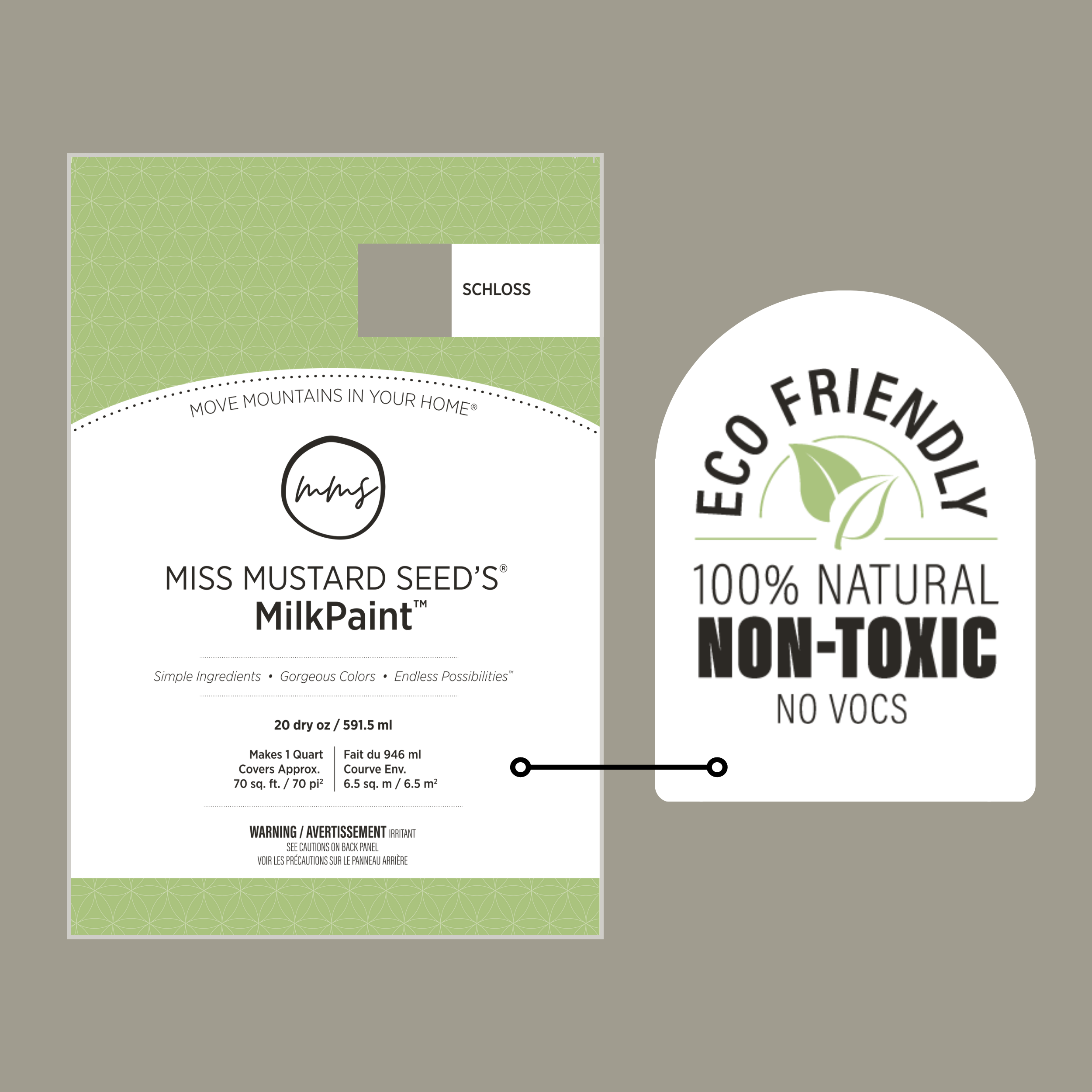 Schloss is German for "castle." This warm greige indeed reminds us of the thick, rough-hewn stone walls of ancient German castles dotting the Rhine River Valley. Don't let the name fool you, though - Schloss's dreamy greige tones wrap you up like a cashmere scarf and your fluffiest pair of slippers. It's much warmer than our other grays. It pairs well with alabaster lamps, shades of cream, and wooden dough bowls.