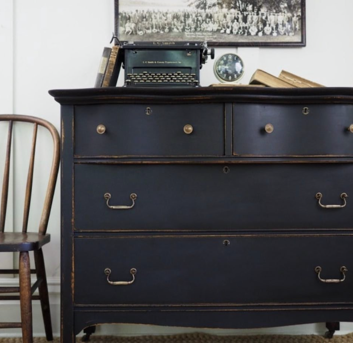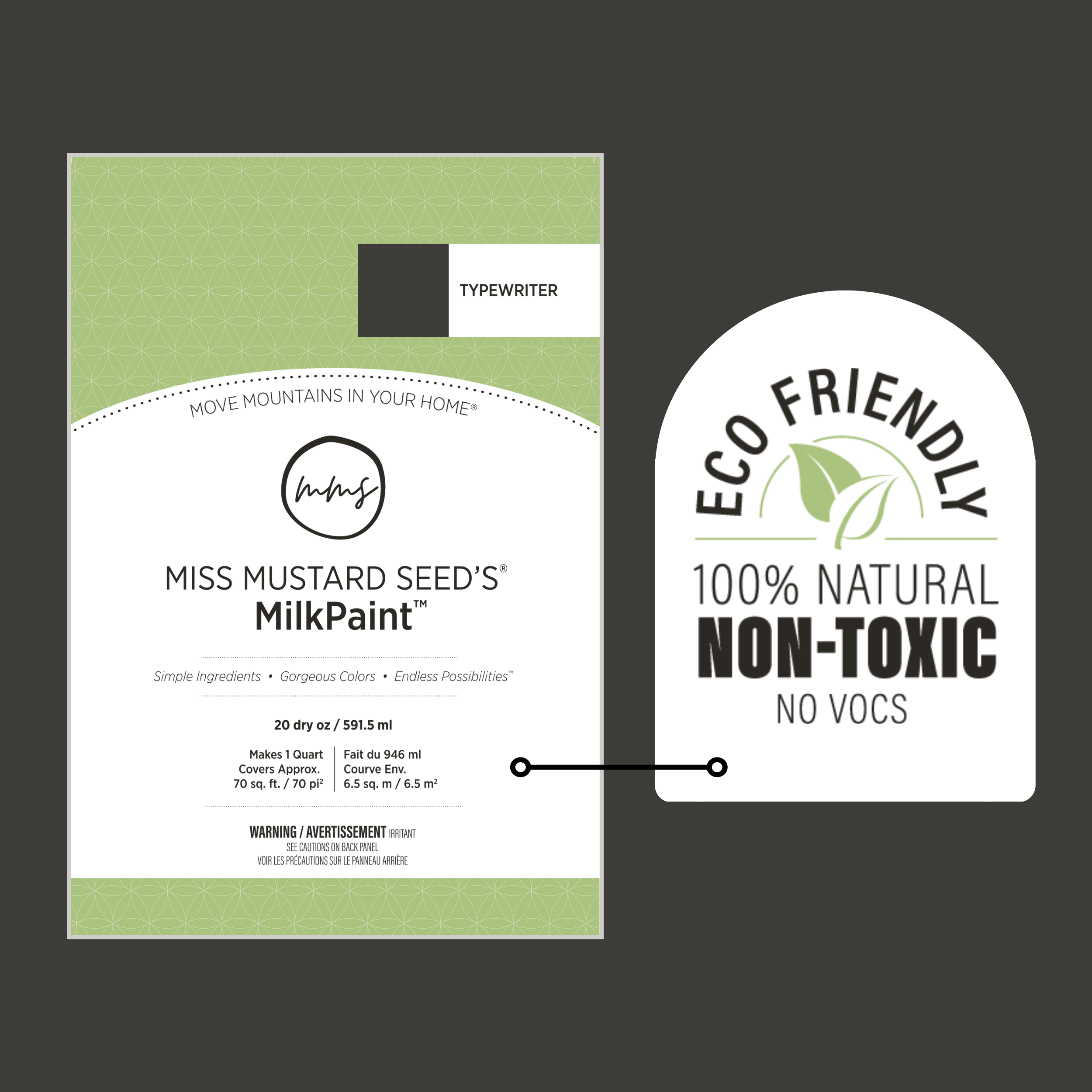 Typewriter is a soft black with a time-worn feel. Like the frequently used keys on an antique typewriter, this color is stately enough to adorn the most classically shaped pieces yet humble enough to give the appearance of a well-loved antique. Add this to any MilkPaint™ color to change the shade.